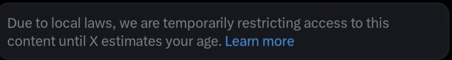 The reality is that ANY content deemed unfit for persons under 18 now requires you to upload PHOTO ID of yourself to prove your age. And people soon found this out if they were following protests outside Migrant Hotels such as one in Leeds. This is the message they received if they were unverified on X.