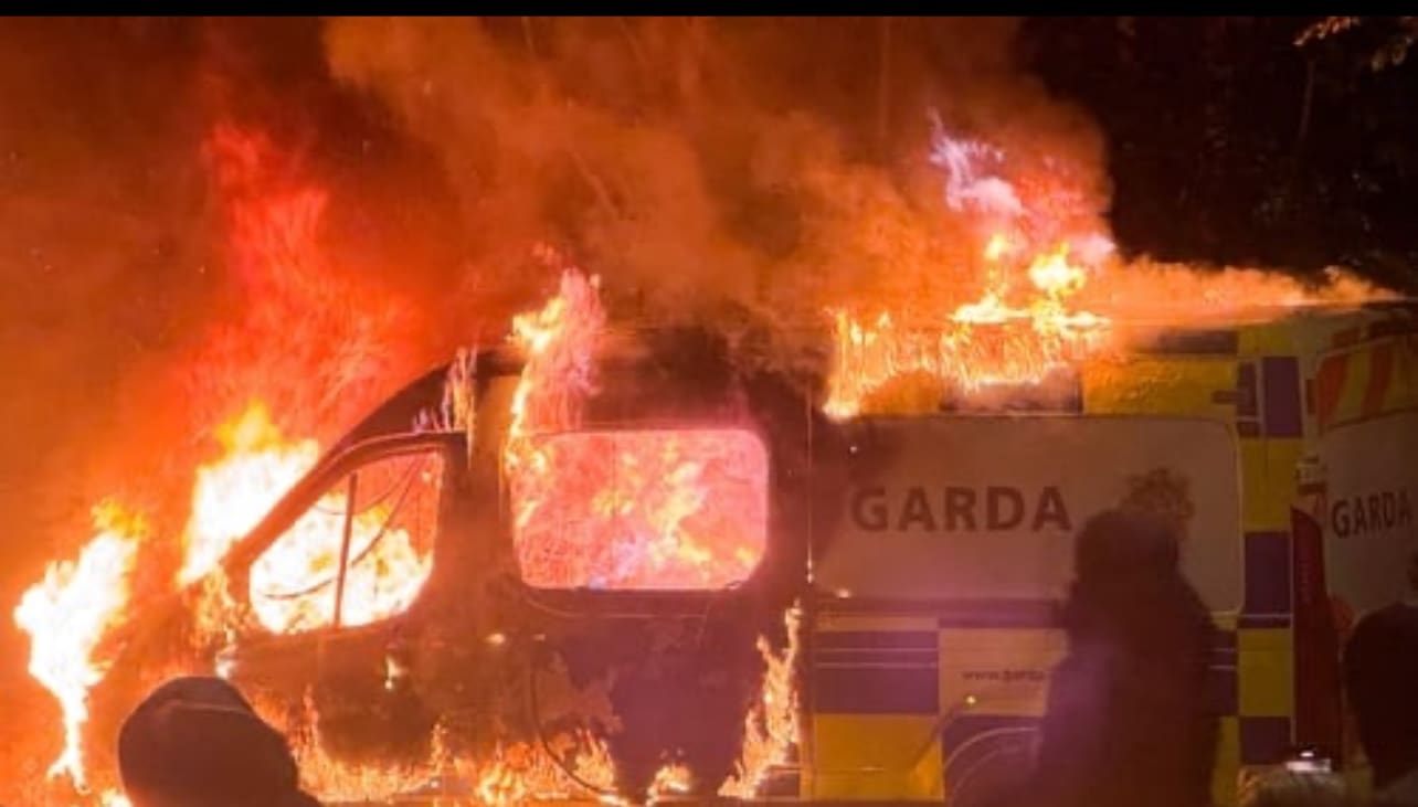 Last night, clashes escalated with a large crowd (in the thousands) gathering outside the hotel. Protesters threw stones, missiles, and fireworks at the Irish police, set a Garda vehicle on fire, and engaged in chanting and demonstrations. The Garda’s public order unit was deployed, using mounted officers, pepper spray, and a water cannon to manage the unrest. Well known Canadian journalist Ezra Levant was covering the incident before being pepper sprayed randomly by the out of control Irish police.
