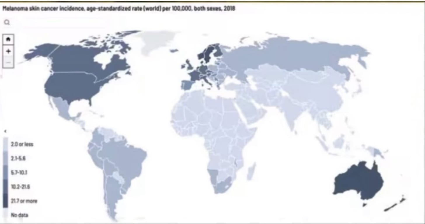 Check out this map. The indisputable truth is that the countries using most sunscreen have the most skin cancer. Coincidence?