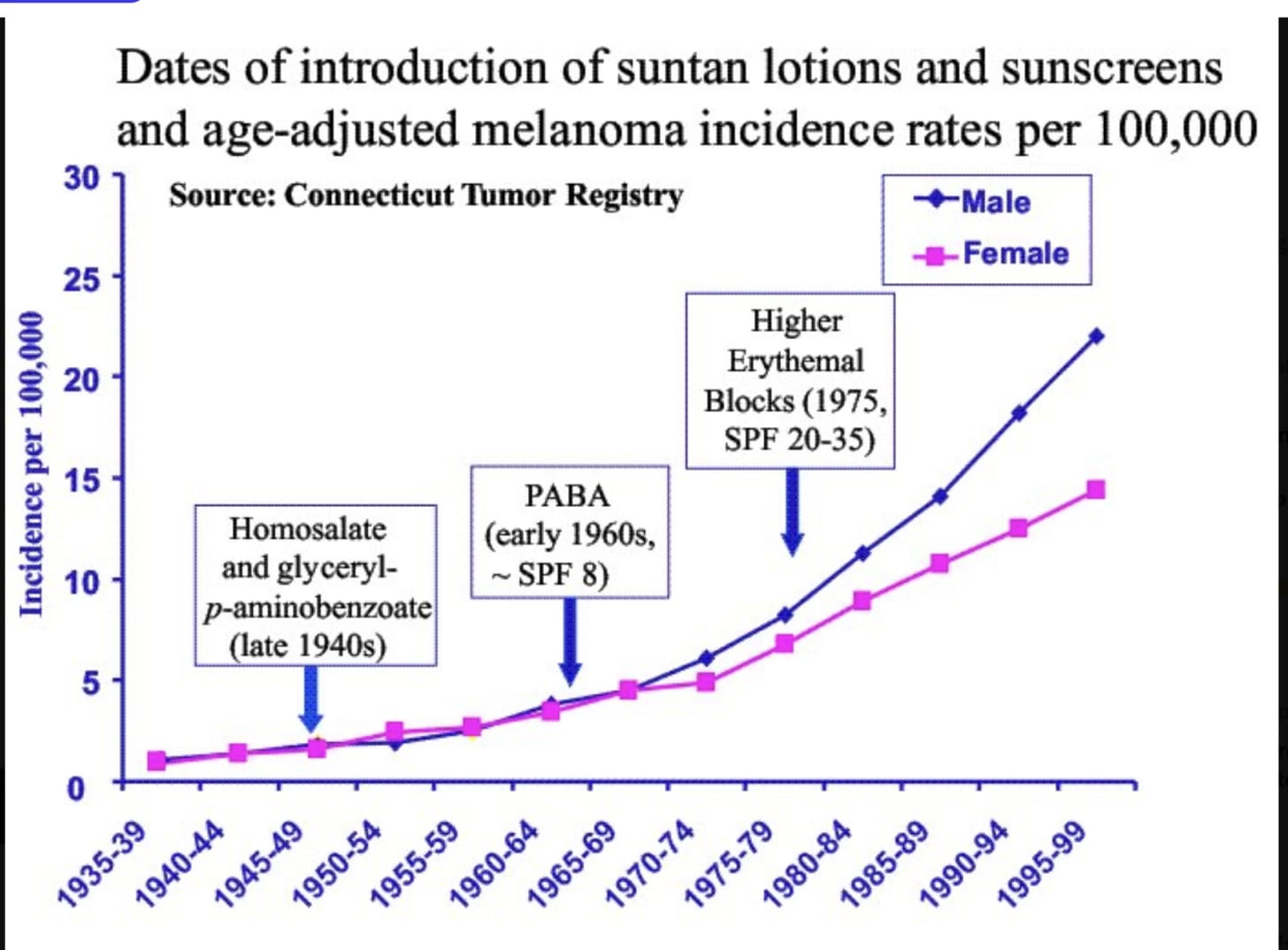 A 2017 Journal of the American Academy of Dermatology study revealed that melanoma rates surged after SPF 15+ sunscreens hit the market in the 1980s! Does this suggest that chemical blockers contained in the sunscreen might actually amplify cancer risks rather than shield us from it?