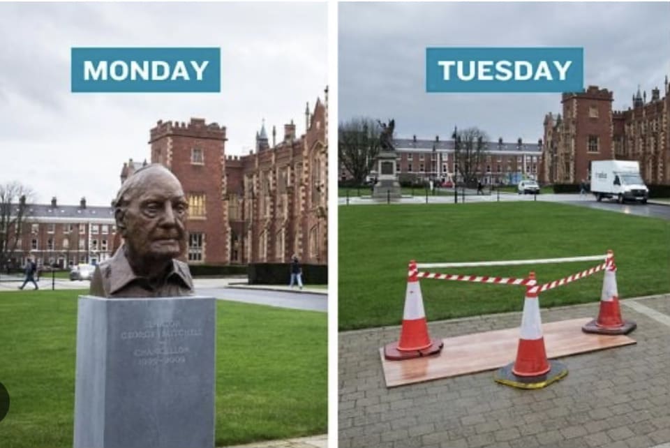 You see Northern Ireland went through that euphemistically called “the peace process” (Surrender to terrorism) and at the head of that process was a certain US Senator George Mitchell. Mitchell was a senior Democrat and a close pal of Bill Clinton. I met him, despised him, but the world loved with him and Queen’s University heaped honour on top of honour on him.