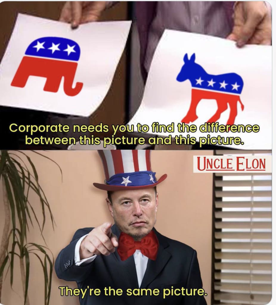 The United States has been a two party state since the 1850’s when the Republican Party emerged, and the Democrats and Republicans have dominated U.S. politics ever since, forming the modern two-party system. It’s a formidable task to try and reverse engineer this situation but I suppose if anyone could do it, it’s Elon.