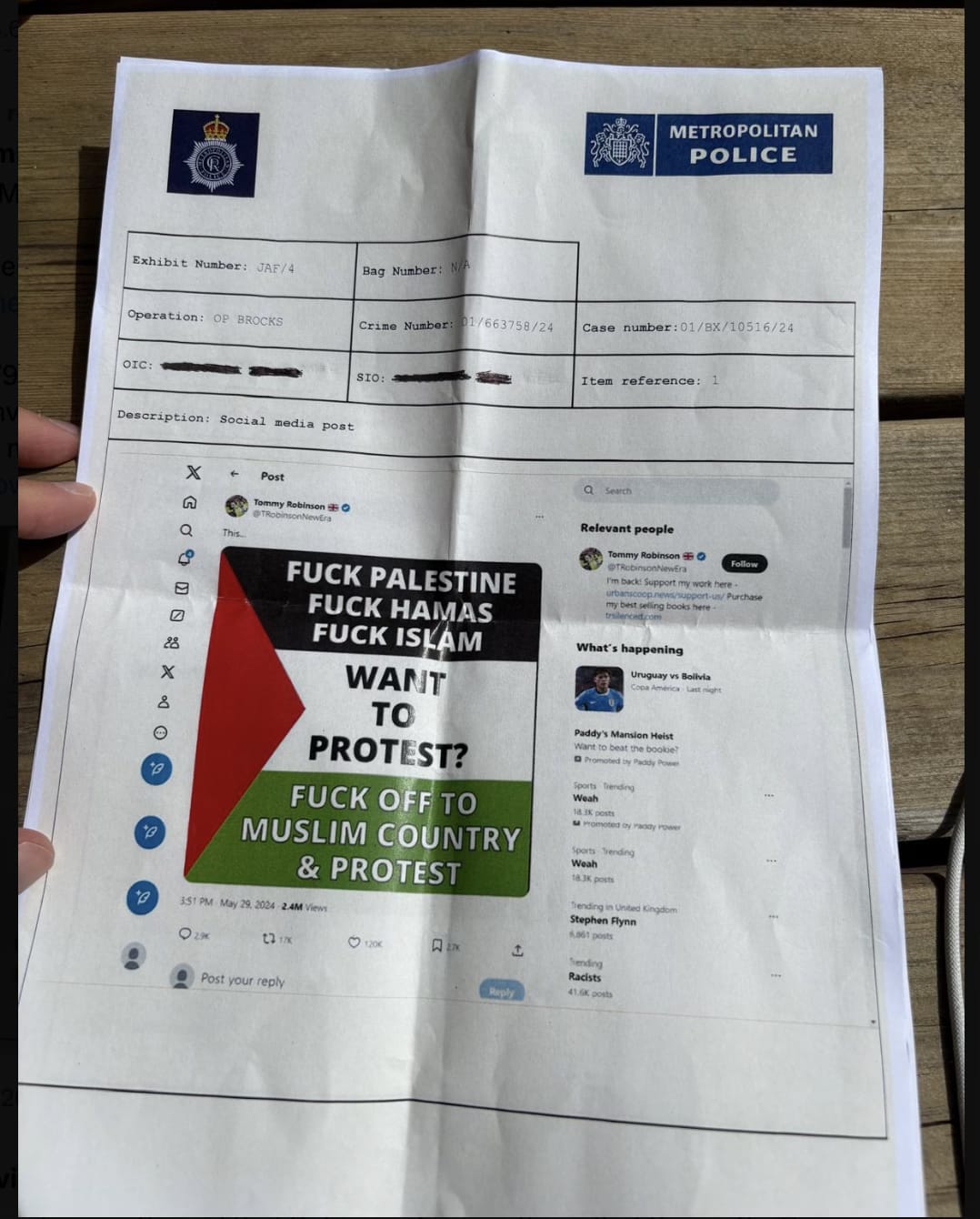 I would suggest the answer to that is a categoric “NO” unless, of course, you are in clear breach of the law. I want you to have look at these two X posts from Tommy Robinson and tell me if you think they merit Police investigation.