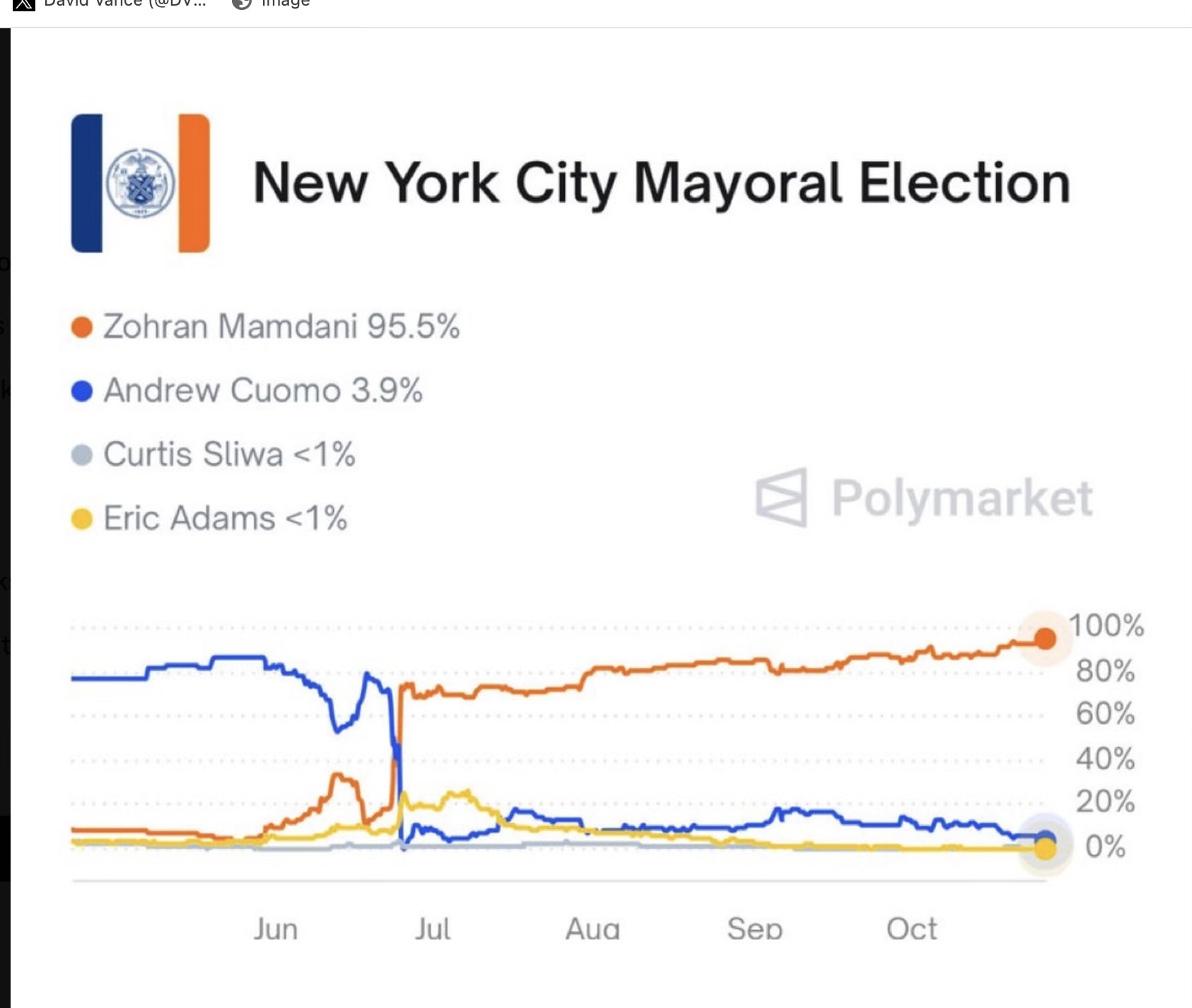 People need to stop kidding themselves. Zohran Mamdani will be the next Mayor of New York. His chances of victory are estimated at around 95% and those who think that if Red cap Sliwa drops out somehow Cuomo can win the day are delusional. As I have commented before, the changing demographics of the Big Apple have set things up for the snake oil muslim salesman Mamdani to promise his way to victory. Once in, he may well be there for a very long time time. How do I know? London.