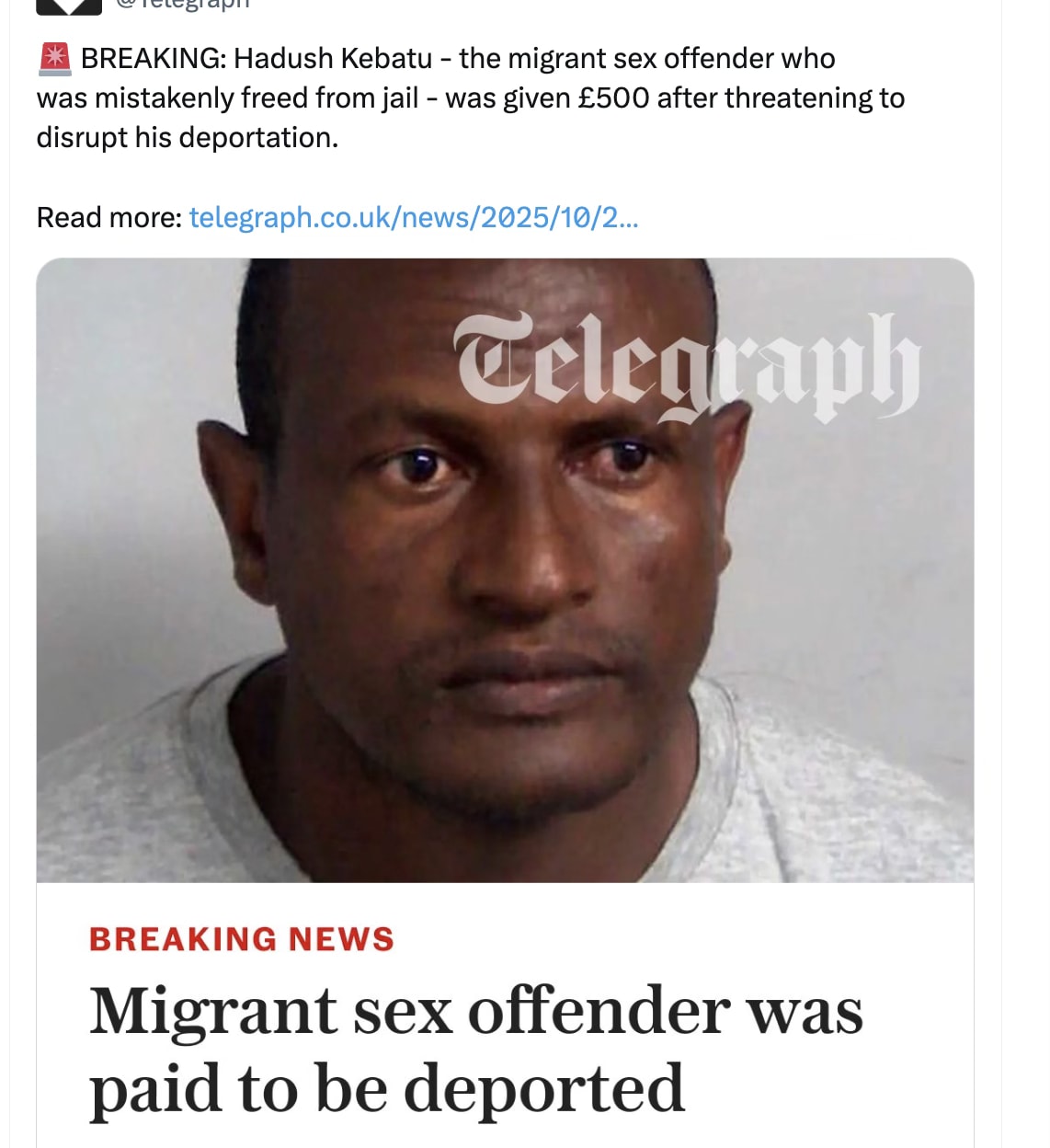 Yes, the convicted Ethiopian sex offender was given £500 to stop disrupting his own deportation. Again, this pandering to the scumbag gifted him around a years income in Ethiopia.
