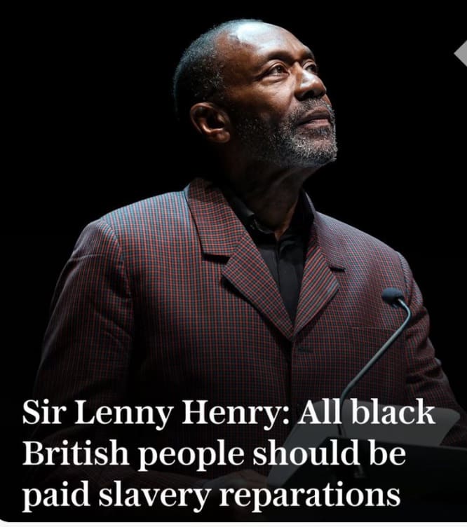 Did you see that (alleged) comedian Sir Lenny Henry has called for reparations in his new book The Big Payback. He argues that the UK owes £18 trillion in compensatory payments to address the “lasting impacts” of the transatlantic slave trade.