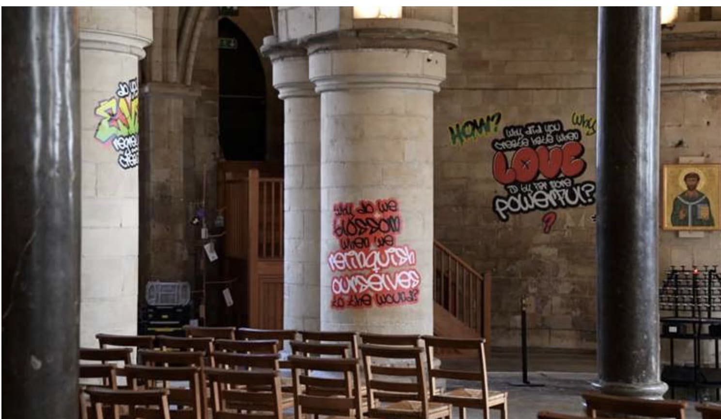 You see Canterbury Cathedral has unveiled “Hear Us,” a graffiti art installation “focusing on partnering with marginalised communities—such as Punjabi, black and brown diaspora, neurodivergent, and LGBTQIA+ groups.”