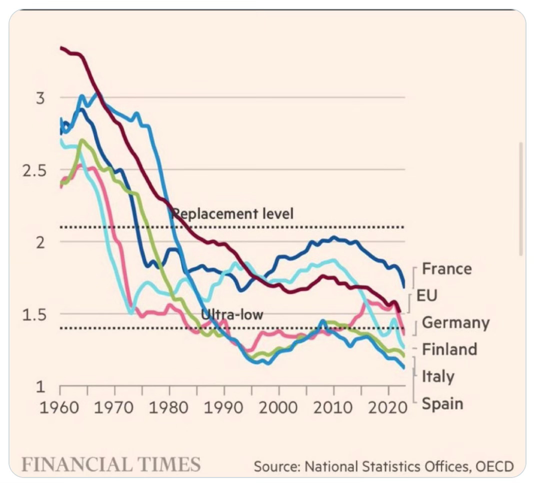 To dismiss this as a “conspiracy theory” is to deny facts. Europe (and the UK too) has rapidly stopped having enough children and so that means that over enough time, let’s say 50 years, Europe will stop looking like Europe and will instead become Sub Saharan Africa but with worse weather.