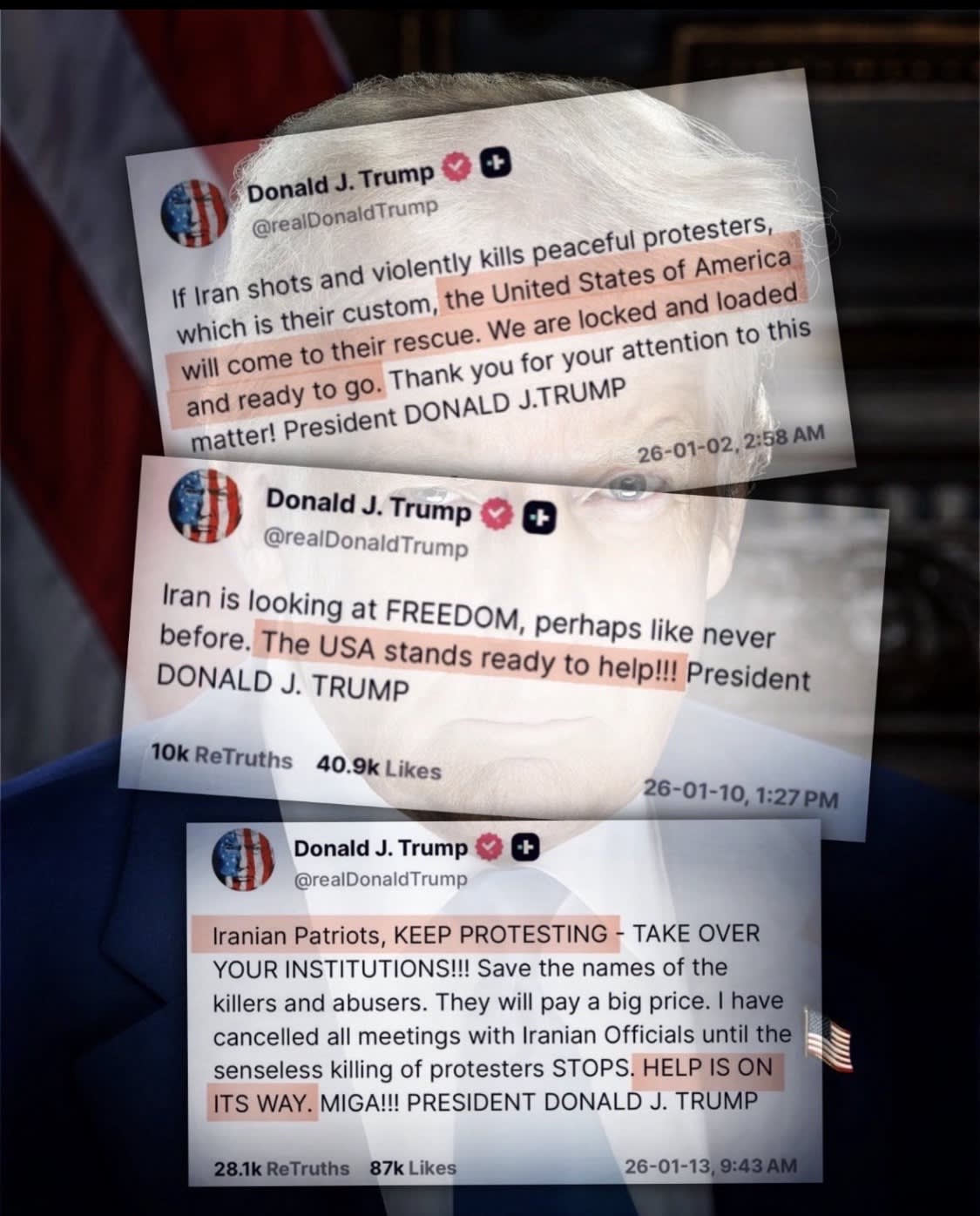 These posts are now about a month old and around 35,000-50,000 Iranians took these guys at their word and are dead, murdered by the killer regime. You see the problem?