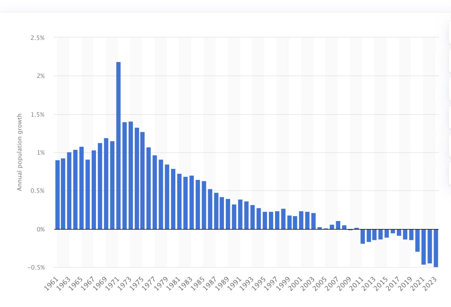 Why? Well, Japan’s total fertility rate was 1.15 in 2024, a record low. This rate, representing the average number of children a woman will have in her lifetime, is significantly below the replacement level of 2.1 children required to maintain population levels. It has an ageing population. It is seriously sandwiched by these factors.