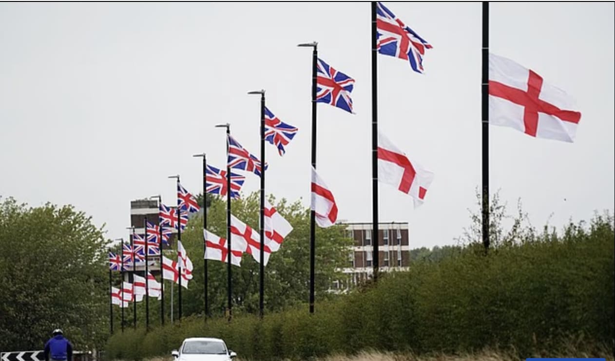 The display of national flags on Britain’s streets has become a ‘tool of division’ and ‘intimidation’, claimed Emily Spurrell, chairwoman of the Association of Police and Crime Commissioners. She just told a national conference that the surge in St George’s and Union Jack flags being hung on lamp posts, motorway bridges and street signs across the country was ‘sowing fear’ and ‘fuelling division’.