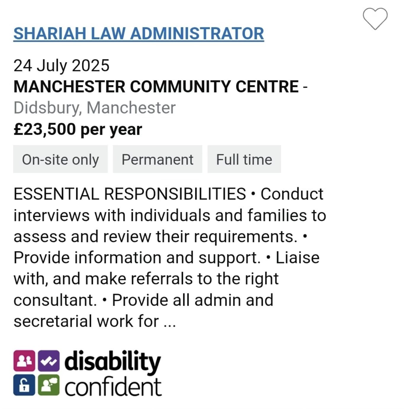 I was curious to understand what the role involves. Unbelievably it is a role supporting the Manchester Shariah Council, an organisation focused on Islamic legal mediation!