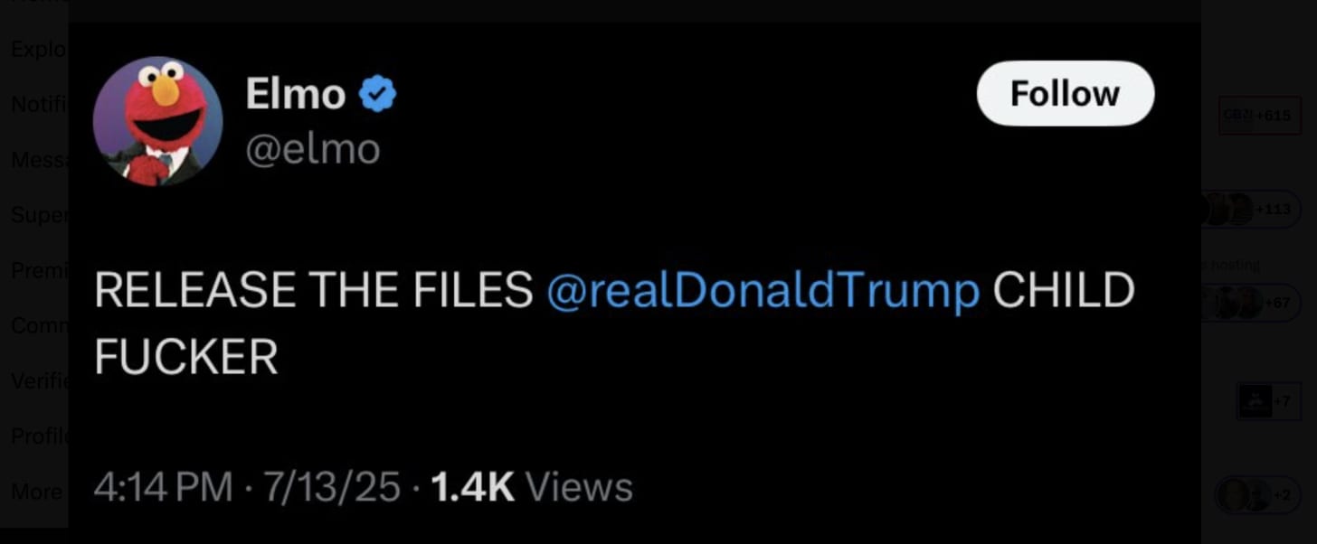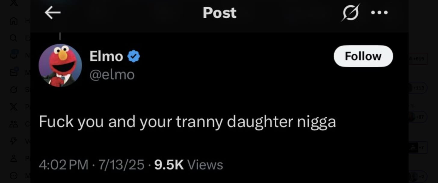 You see Elmo is a character in Sesame Street and Sesame Street was made for PBS. As part of Trump’s “Big beautiful bill”, there were massive funding cuts to PBS. So could it be that this posts by “Elmo” are the actual thoughts of a Sesame Street employee? I think this is at least plausible and so perhaps this gives a REAL insight into the mindset of these woke leftists?