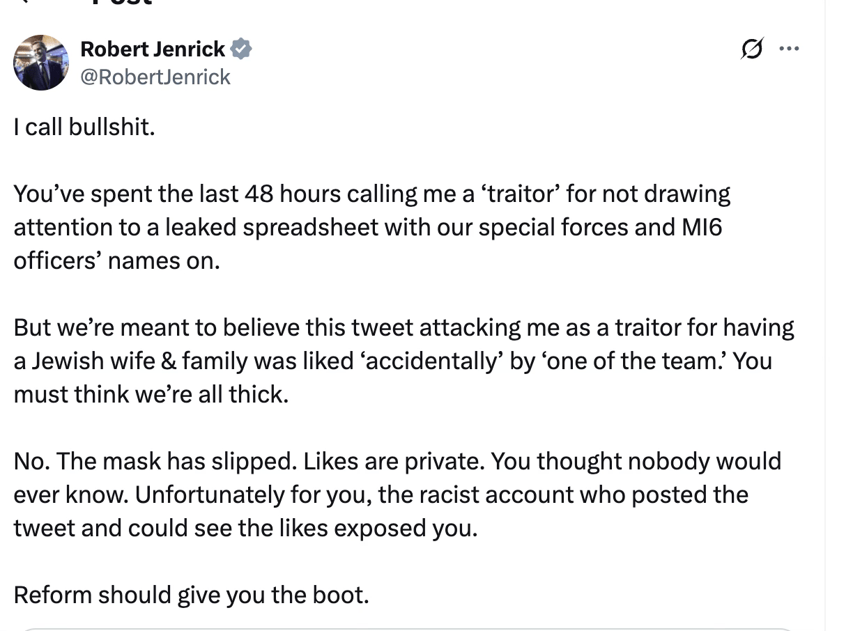 Robert Jenrick, the subject of this vile attack, had this to say by way of response to Zia.