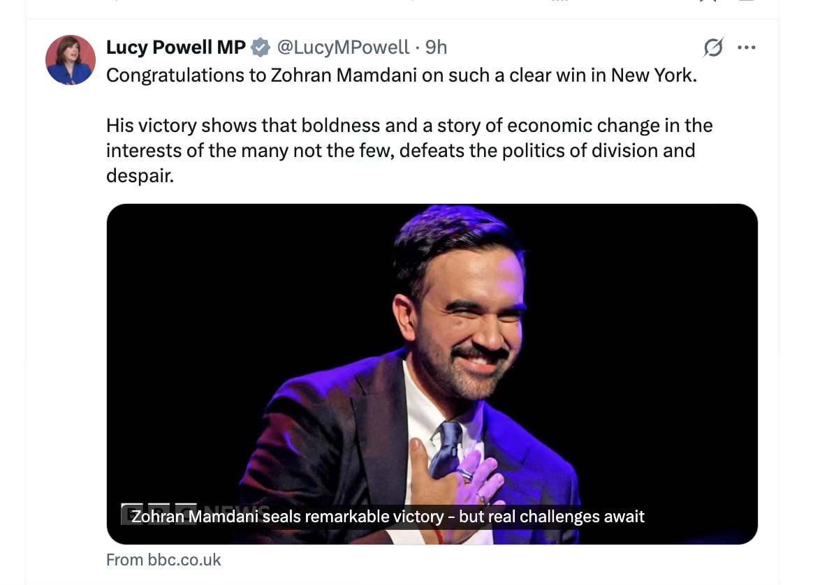 His victory has been celebrated not just in the USA but also in the UK with the likes of Labour politicians pushing out stuff like this. This is from Labour’s new Deputy Leader, Lucy Powell.